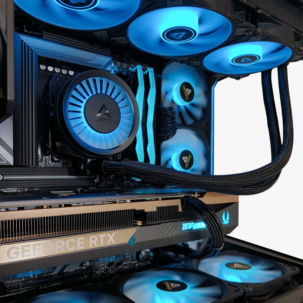 A 1TB M.2 PCIe SSD provides lightning-fast load times and ample storage, while 10 x ARGB fans complete the build with superior airflow and dynamic lighting.